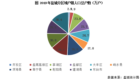 分区域来看,盐城户籍人口主要集中在下辖县市,滨海县、阜宁县、东台市户籍人口都在100万人以上,总户数皆超35万户。主城区仅亭湖区、盐都区和大丰区人口相较集中,户籍人口都在70万人左右,总户数都在25万户左右。