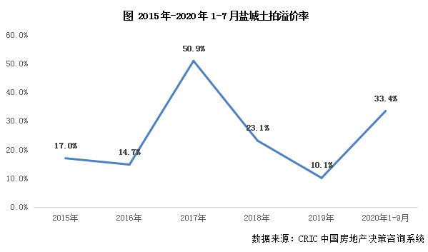 2018年以来,随着房地产市场明显降温,盐城土地市场同步回归理性,房企拿地态度趋于谨慎,土拍溢价率连续两年回调。