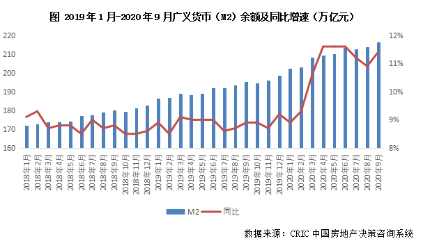 疫后为了支持实体经济有序复工复产,央行货币政策基调明显转向积极,3月M2增速迅速回升至10.1%高位,并连续数月高位运行,这在2017年央行提出稳杠杆政策以来已实属罕见。而在7、8两月M2增速阶段性回调后,9月M2增速再度回升至10.9%,环比增加0.5个百分点。