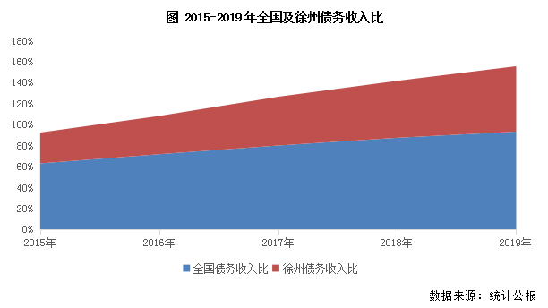 盐城本地居民偿债能力明显偏弱,债务收入比长期维持在较高水平,近年来更有快速增长的趋势,难免将抑制未来继续加杠杆的空间。2015-2019年,盐城债务收入比由47%提升至75%,净增长28个百分点,与全国债务收入比相差不大。