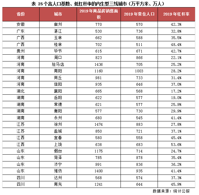 二、三大维度筛选25个高人口基数、低杠杆率内生型三线城市