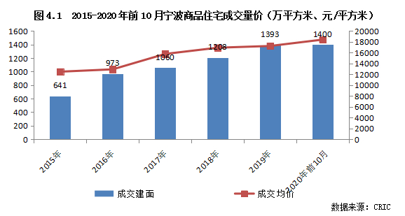 以近两年人口增量表现突出的宁波为例,2019年宁波的常住人口增量高达34万,仅次于杭州、深圳、广州三城,当年商品住宅销售面积达1393万平方米,较2015-2018年均值增加约四成,也创下历史新高,并首次超过杭州,成为省内住宅成交规模之首。再看2020年,前10个月商品住宅成交总量约为1400万平方米,已经与2019年全年总成交规模相当,全年成交规模势必创下新的历史纪录。