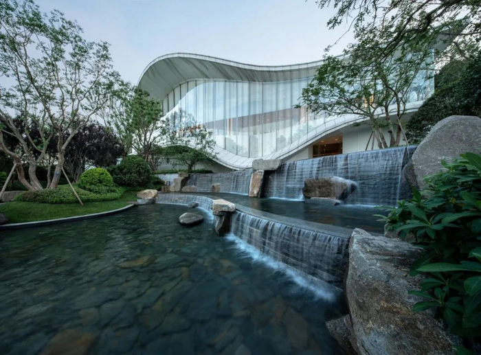 其一,立面玻璃幕墙设计,让外界的阳光、湖景、园林与室内尽可能交互。