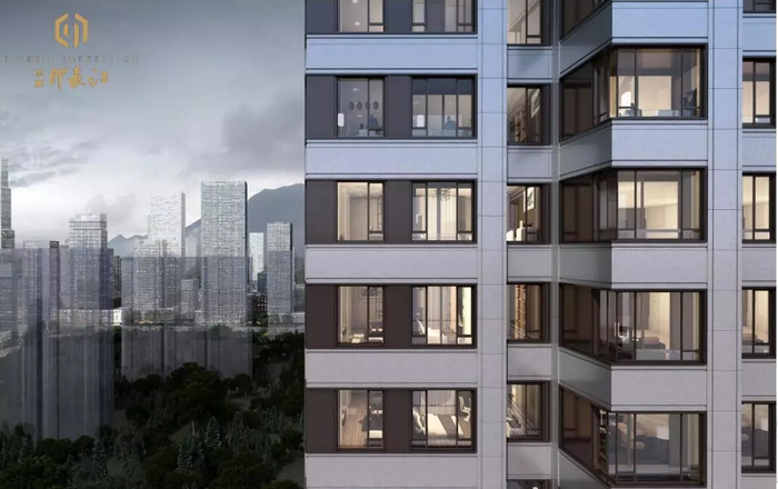 同样,印长江建筑立面,设计风也高度同频全球顶豪,国际灰设计感、铝板新型材料。