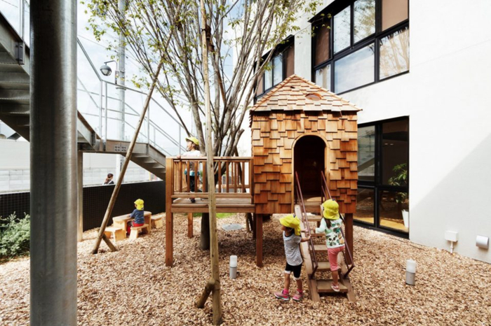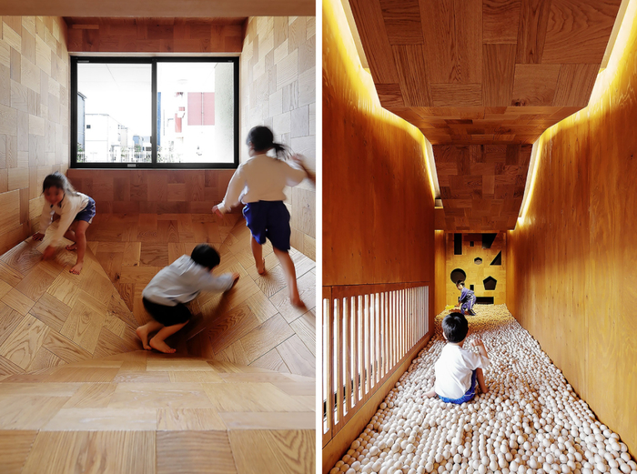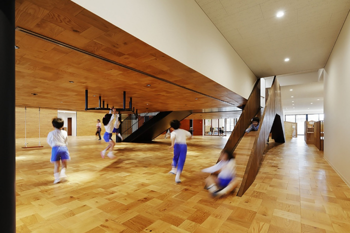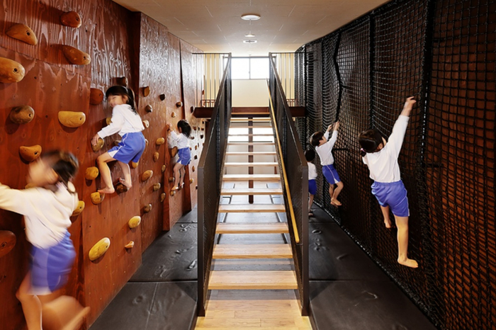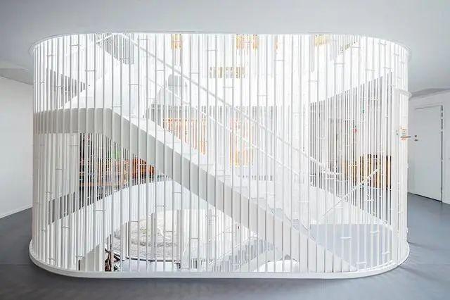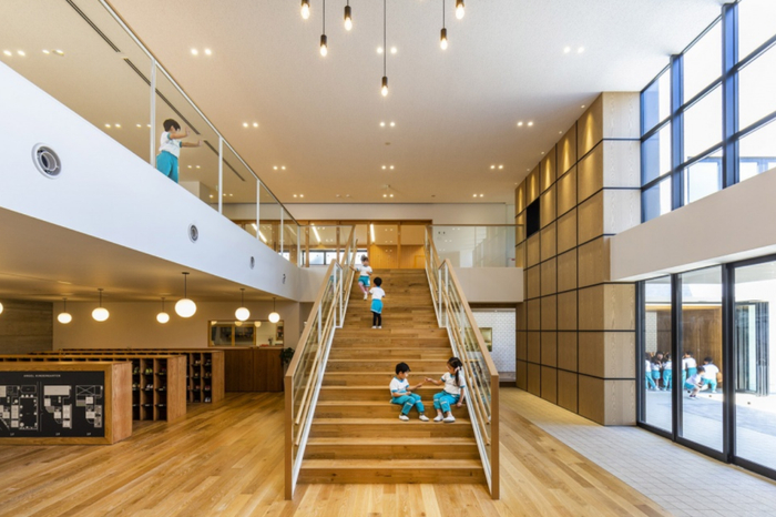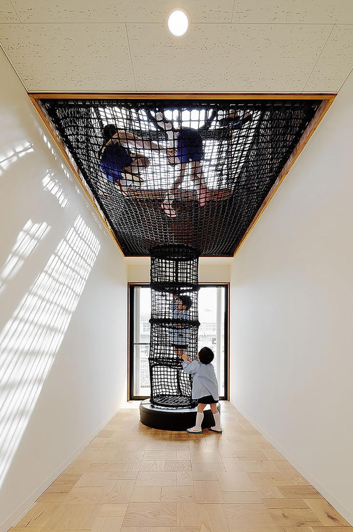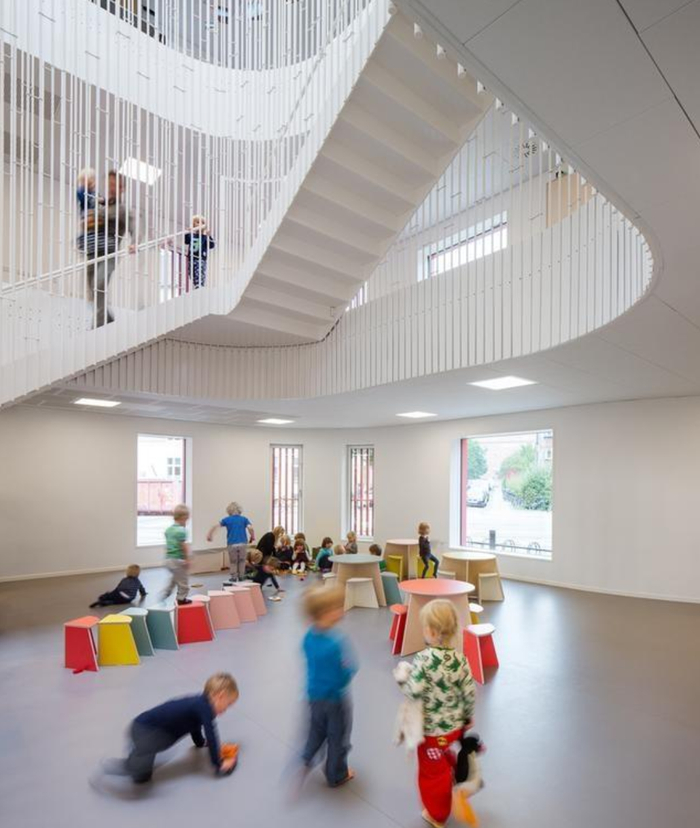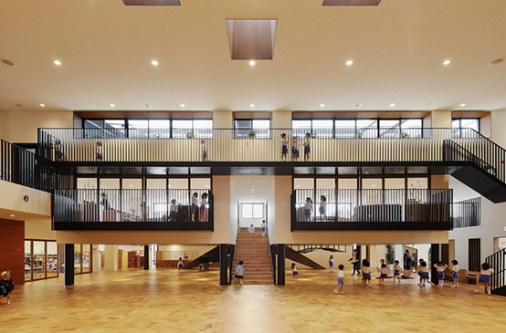幼儿设施中经常被栅栏关闭的楼梯被故意设置在了园舍中心。