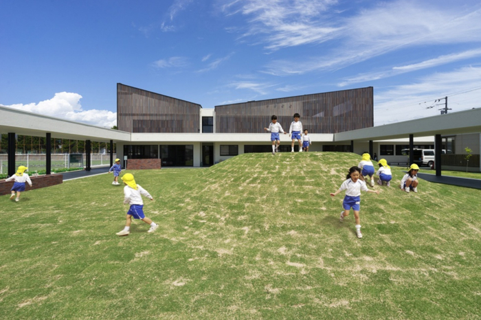 这是爱媛县松山市的新建幼儿园项目,以「通过游戏培育健康身体的园舍」为设计概念。