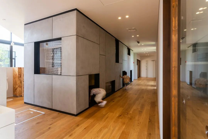 另外,这些木条构成的“围栏”也能有效阻挡孩子们的视野,这样他们就能更集中于室内的学习任务中,而不是望向室外。
