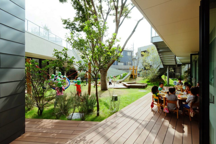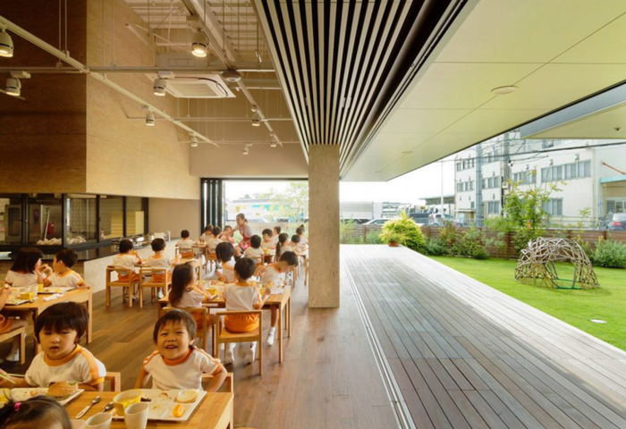 此外,这所幼儿园几乎是全部开放的,甚至没有做过多的隔音处理。但这种自然的“白噪音”并非是个坏事,在这样的氛围下学习成长,反而有利于对孩子们专注力的培养。