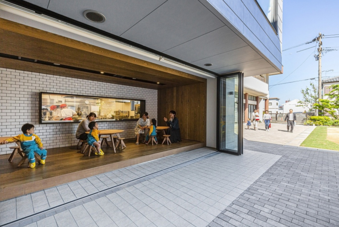 除此之外,滑动门窗的打开和闭合让孩子们可以在室内或室外空间中用餐。这种高度自由的空间支配,既满足了多种使用需求,也创造了各种游乐环境,激发了孩子们的无限创造力。