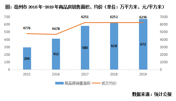 2019年,市场需求已趋于饱和,亳州楼市逐步降温,下半年更是加速转冷,全年成交规模同比增幅收窄至7%,成交均价下滑至6236元/平方米。