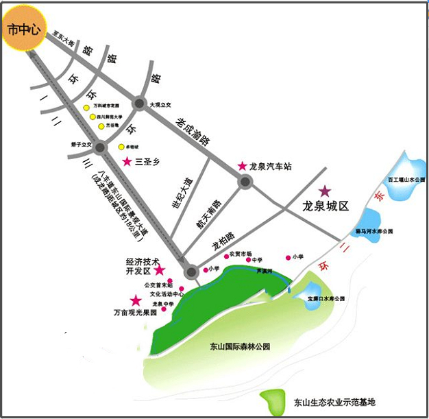 特别是成都,自天府新区及建设新中心而勾画出一条「天府大道」中轴线,打破了城市「摊大饼」,引爆资金涌入沿线,如今龙泉、简阳成「东进」腹地,新机会降临。