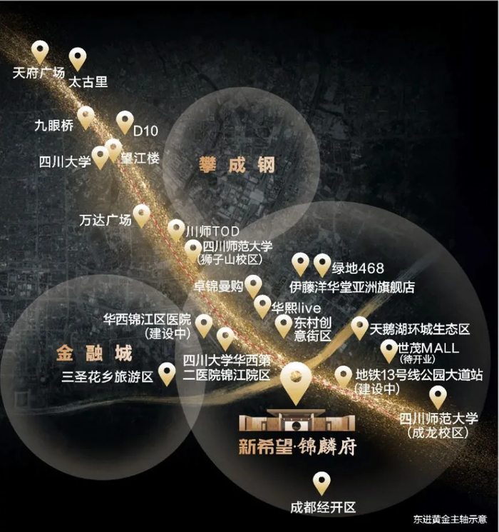按照「东进」战略新使命,以及东部新区的成立,成都经济地理格局势必会发生新的裂变,浮出一条不同于「天府大道」城市中轴线的经济轴线,从中最先嗅到商机的房企、车企等视之为「黄金东轴」。