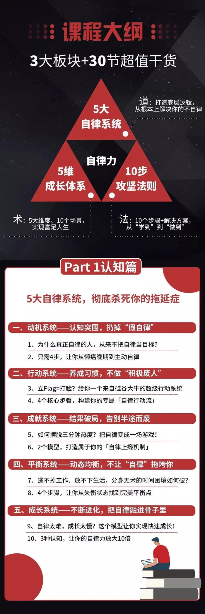 为此,我决定为大家带来30堂《引爆自律力》课程,30天带你攻克惰性,用不痛苦、易坚持、可操作的方法,让成效看得见,带你夺回人生主动权。