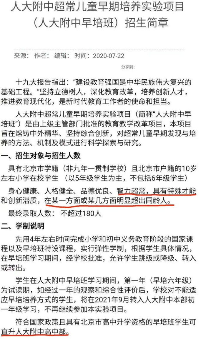 另一方面,六小强一些特批项目,比如人大附中的早陪班,还有十一学校的综合优异,并不是锁区的,而是面向全北京招生。分母变大了,这也直接导致录取率再次降低。