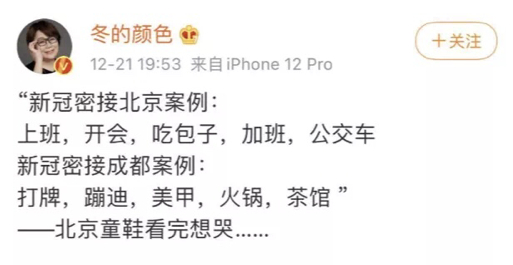 最近北京流调公布的病例让人看了心酸,当成都密接者打牌、蹦迪、做美甲,吃火锅的时候,北京的密接案例不是在上班就是在上班的路上。