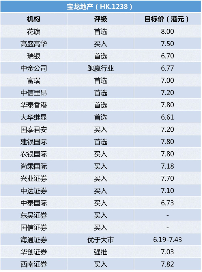花旗等多家机构重点关注了宝龙《新五年战略规划》(2021-2025),在2020年公布的新五年规划中,宝龙明确提出了五年内权益销售额超千亿的目标。富瑞在规划公布后发表研报指出,基于宝龙近几年的销售增长速度,预计公司在之后几年将维持25%的销售复合增长率,提早完成权益销售额超千亿的五年计划目标。花旗、瑞银、中信里昂、中金公司等多家机构也对宝龙未来三年的销售额较快稳健增长保持信心。