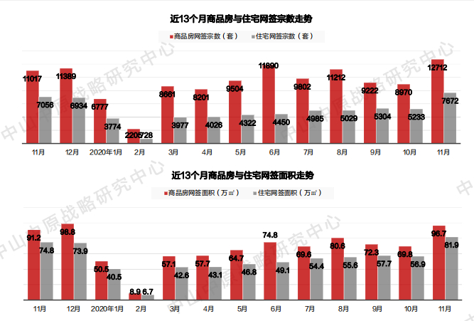 整个11月,中山市商品房网签12712套,环比10月上涨约41.7%,与去年同期相比上涨约15.4%,超越了传统意义上的金九银十,为年内单月最高。