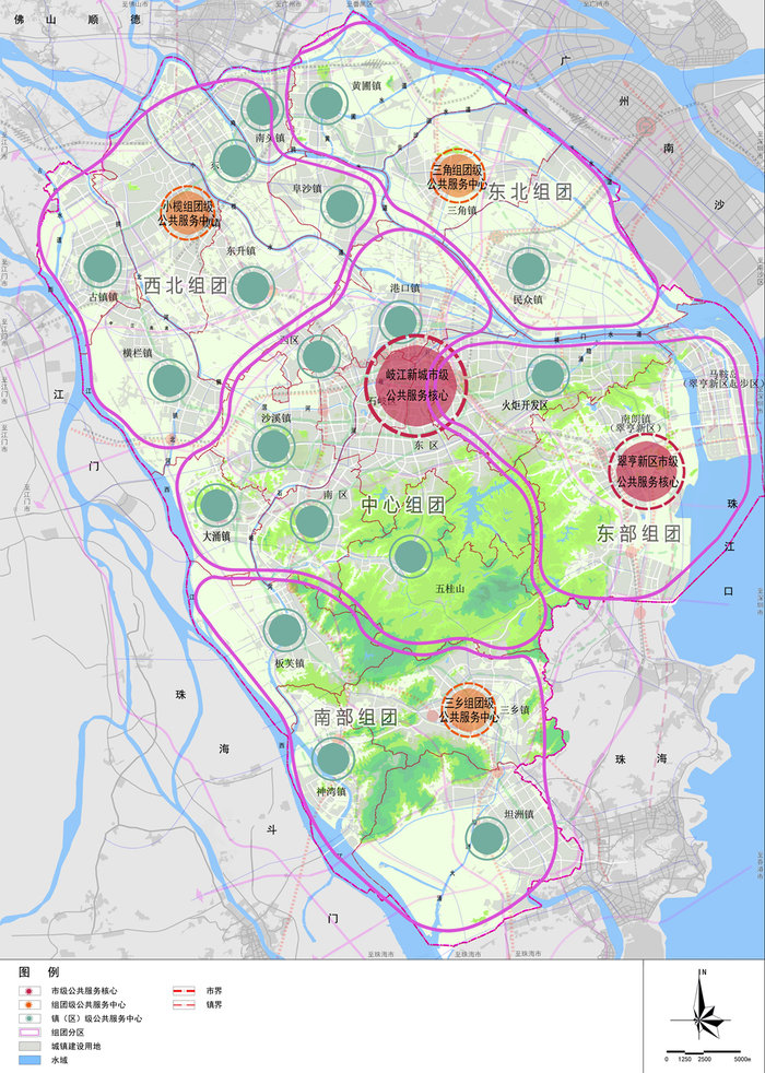 南部组团的地理位置很特殊,组团的北部是中山最大的山系五桂山,大到几乎能把南部组团跟中山的其他镇区完全隔开。