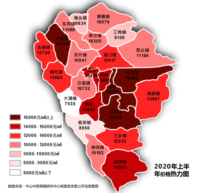 感受二:中山各街各镇的房价,发展很均衡。