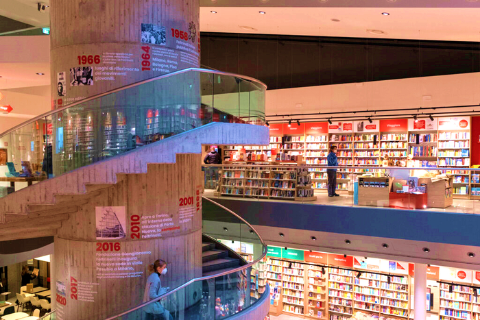 Feltrinelli是意大利领先的出版商之一,其在米兰的最新书店是连锁店中面积最大的一间,约达2000㎡,其内部如同图书馆一般,书籍存量超4万册,同时设有二手书交易专区,并收藏有绝版书、亲笔签名书副本、收藏家藏品等4000余份。