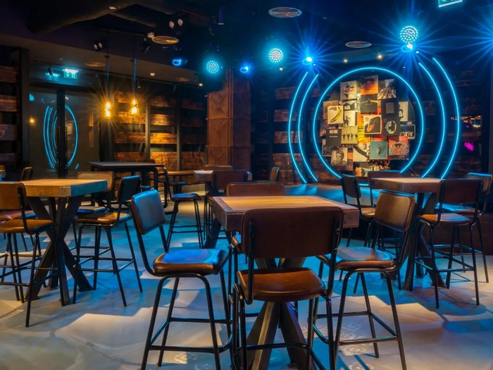 店内不仅提供多种餐饮服务,还配有音乐表演,且消费者可通过大屏幕观看体育赛事。