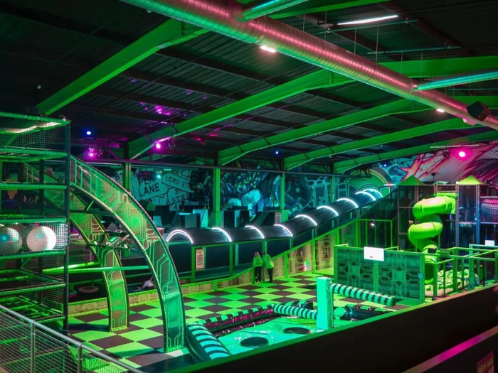 Flip Out成立于澳洲,是目前英国最大的室内冒险乐园特许经营企业,主要经营蹦床乐园项目,其在2020年开出了与众不同的一家新店——Flip Out Super-Center。该超级中心的改造费用超过100万英镑,面积达4180㎡。