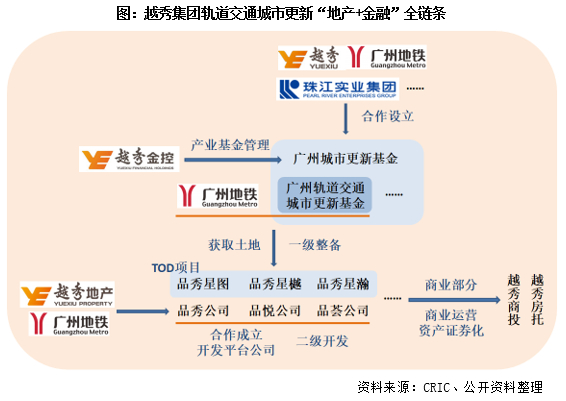发起设立广州轨道交通城市更新基金,合作成立平台公司进行TOD项目开发。越秀集团自2016年4月牵手广州地铁集团,在资本运作、金融服务、物业开发、云计算等领域达成全方位合作。2017年7月,由越秀集团牵头,联合广州地铁集团、珠江实业等企业共同参与发起设立广州城市更新基金,总规模2000亿元。其中,首期“广州轨道交通城市更新基金”规模为200亿元。