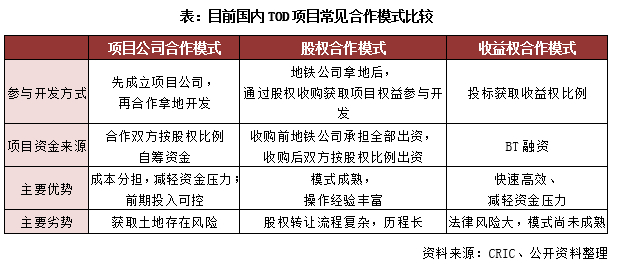 (1)目前房企参与TOD开发较为常见的三种模式