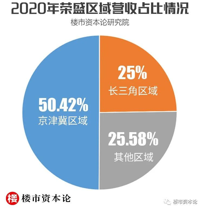 其中,2020年半年报显示,当期荣盛发展在京津冀区域营收占比50.42%,长三角区域的江苏、浙江等地的营收比例超过25%,且苏浙两省在2020年营收增长幅度均超过了30%。据称,这来自荣盛对 “两横、两纵、三集群”战略的执行。