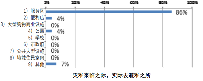 日本311大地震之后,相关机构曾对地震逃难所等方面进行了问卷调查。结果如上图所示,服务区以碾压式优势成为人们实际避难的首选,可见服务区在人们心中的重要地位。