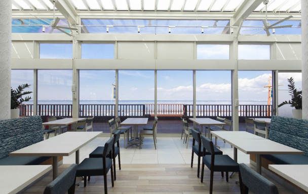 服务区内各项设施都非常舒适,从餐厅到洗手间都可以成为观海佳地,体验十分独特,让人们在路途中能够充分感受到海滨度假式的轻松氛围。