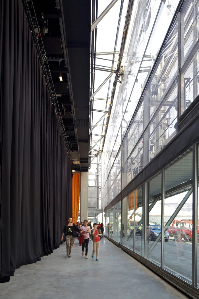 该剧场是位于里尔的阿拉斯欧洲公园更新项目的组成部分,作为一个多功能的市政大厅,这里可以承载各式不同类型的活动。借助推拉门窗的使用、模块化且可重组的座位,以及一个可整体收缩的立面,将户外空间拓展至坡地公园,构成自由灵活的平面布局,为空间与功能开辟了诸多可能。