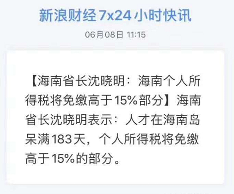 只要在海南呆满183天,个人所得税将封顶,最高缴纳额度为15%;无论你是年入百万,千万,还是过亿。都一样适用!!