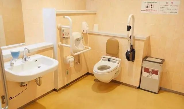 在设施大项——无障碍卫生间的设计方面,可以参考日本。日本的无障碍卫生间除了会有一些残障辅助设施外,还会设计感应式卫生纸机器,感应出纸,对手腕无力等肢残群体相对友好。