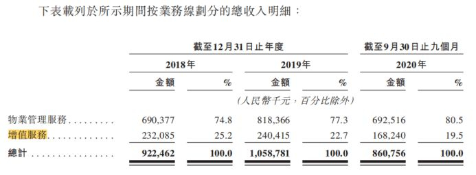 在2018年、2019年以及截至2020年9月30日,增值服务所产生的收入分别为2.3亿元、2.4亿元和1.68亿元,分别占总收入的25.2%、22.7%和19.5%,未有明显增长,反而呈现下滑趋势。
