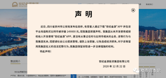 楼市资本论打开世纪金源官网后,率先映入眼帘的就是一份特别的“冒用声明”。有人因为下载“世纪金源”APP被诈骗14.9万元,这与世纪金源无关。
