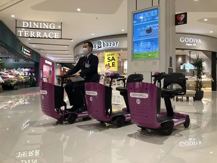 此外,对于想要购物而怕累的顾客,还可以随时租用“Shopping Mobility”移动座椅继续逛街。