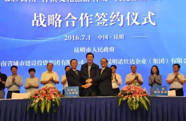 2016年7月,《昆明日报》头版刊文《市政府与省城投集团、诺仕达集团签署战略合作协议 确保古滇文化旅游名城2018年全面建成》,称政企合作的创新之举。