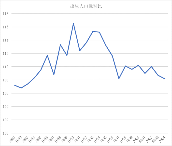 从衡量男女平等程度的某个比较明确的量化指标,即出生人口性别比来看,出生人口性别比一般以女性为基数视作100,男性数目与之对应。简单说,假如有一年里某地出生了100个女孩和106个男孩,那么该地那一年的出生性别比就是106。一般来说,自然情况下出生人口性别比最多也不能超过107,也不会低于102。