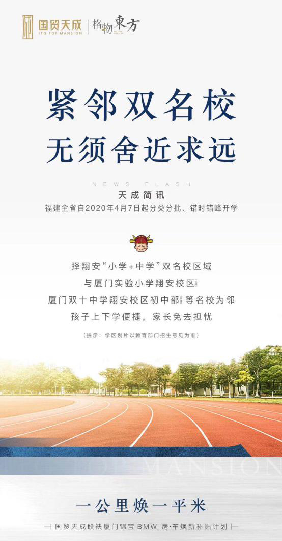 事件起因是3月12日,厦门市翔安区教育局传出消息,国贸天成无法划片到厦门实验小学翔安校区(以下简称“实小”)和双十中学翔安校区初中部(以下简称“双十”),将采用多校捆绑派位方式派发学位;另国贸天成附近还将拟建新小学。