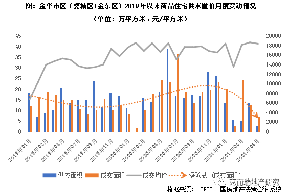 为了贯彻中央“房住不炒”,8-9月金华政府开启预售证管控(拿证难,限价)和限签,尤其在2020年年末,2.5万元/平的高价房源难备案,一直延续至今。2021年3-5月整体成交节节回落主要是基于目前在售项目较少,多数楼盘处于等待预售证的供应空窗期,加之高低配的限签方式,使得数据严重 “失真”。