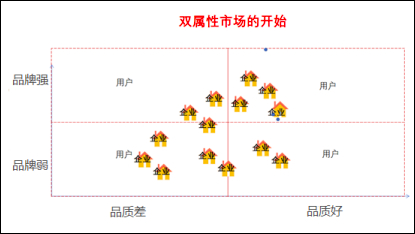 说回到商业世界,如果我们将一个行业的目标市场按照属性分类,会有很多属性维度,包括服务属性高低、品质属性高低、功能属性强弱、区位属性、品牌心智的区别等等。