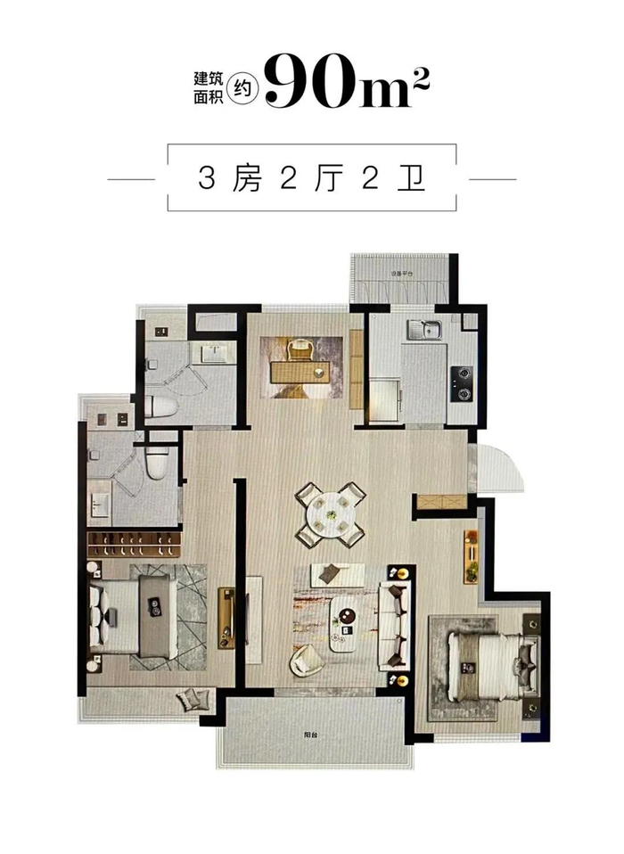 比较适合三口之家来新婚夫妇来选择这样的户型。