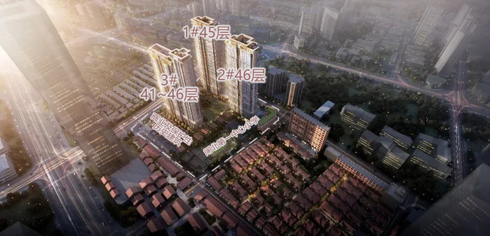 根据规划,一期新建3幢150米超高层住宅,其中1号楼45层、2号楼46层、3号楼41-46层。建成后将成为上海继汤臣一品,世茂滨江,华侨城苏河湾,海泰北外滩的第五高住宅建筑。