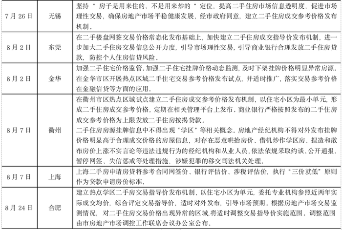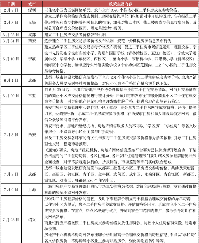表:2021年以来多城发布二手房成交参考价