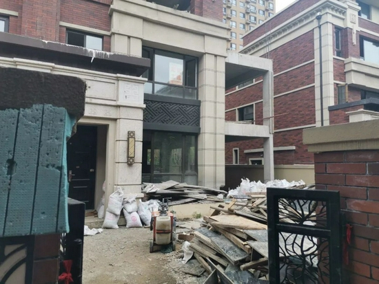 8月24日,记者来到位于沈阳市大东区柳林二街的旭辉东樾城小区南区,虽然园区大门需刷卡才能进入,但并未有物业员工进行监管,穿过大门边上的一家小超市就可轻易进入园区。整个别墅区已经成为一个大工地,同一时间有六七家业主在装修,遍地堆积着建筑材料,三三两两的装修工人在别墅区内随意走动。