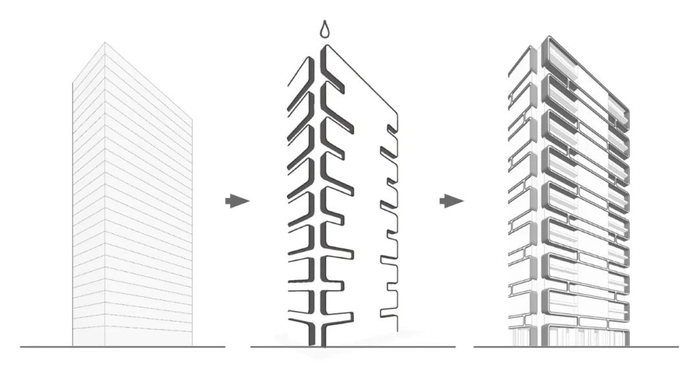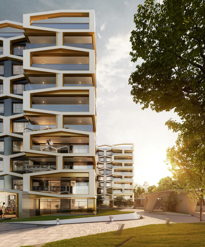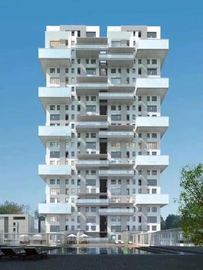 法国的4位建筑师的设计的“仙人掌”外立面,就像把一颗树的形态变成一栋建筑,阳台从树干上延伸出来,阴影从正面延伸出来,保护其外立面。在整个设计阶段,对其环境和当地生活方式的关注引导了建筑师。整个建筑高56米,共17层,有120间公寓,几乎每一户都有一个私人阳台和空中花园。