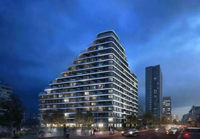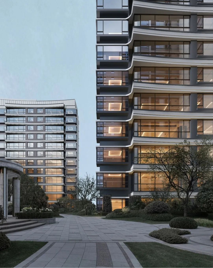 北京的中海甲叁號院立面选用了铝板+玻璃幕墙组合以及奇偶层露台设计,同时将跑车阿斯顿马丁+全球游艇法拉帝VIRTUS的灵感曲线融入设计中,构筑极具现代艺术感的流线。