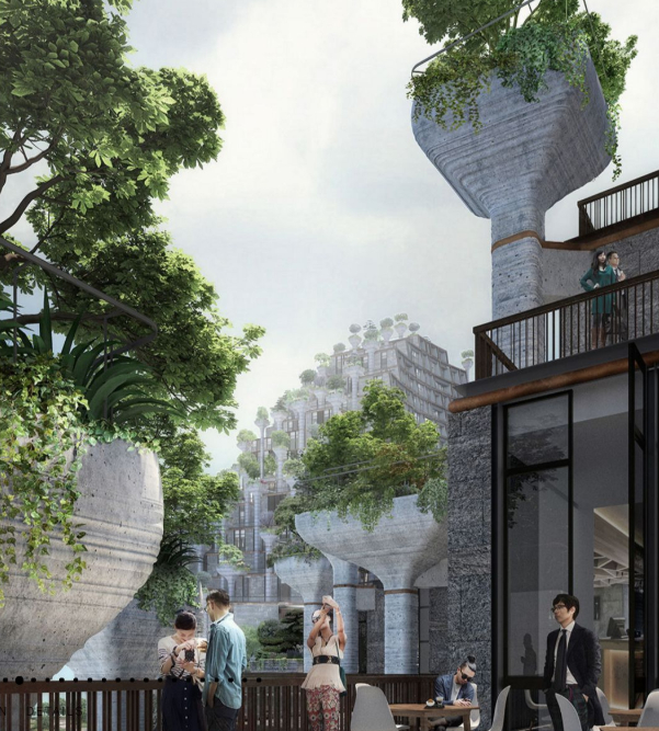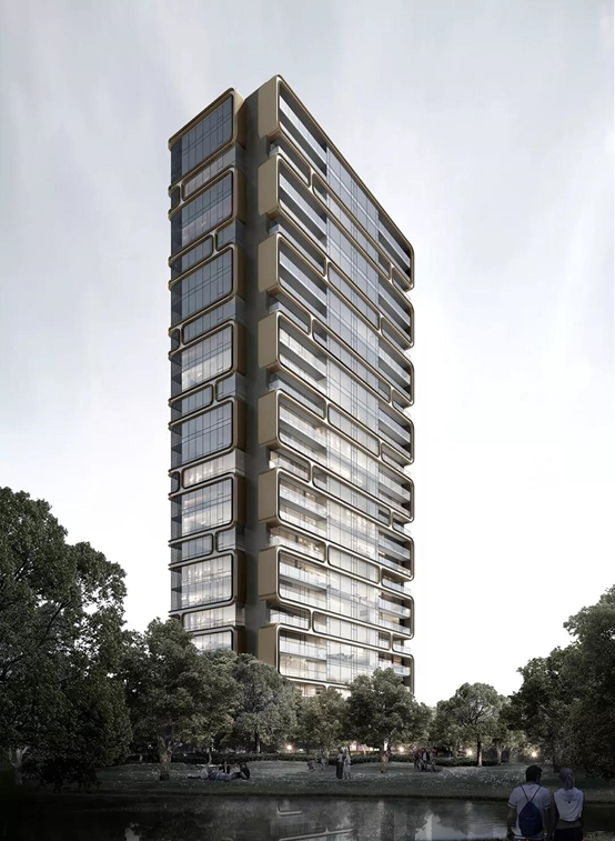 据说这个项目灵感来自中国山水园林古典的柱状设计,还有有古巴比伦的一番风味,设计师想将项目设计成空中花园。