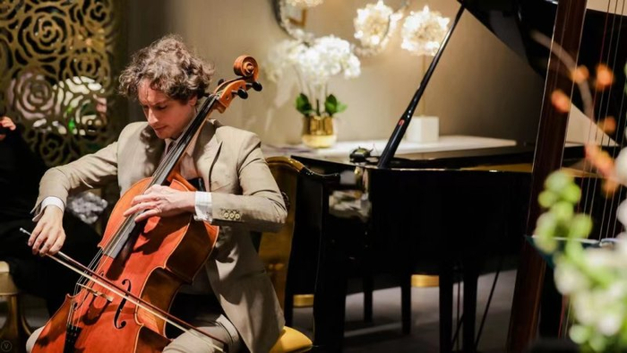 发布会上,法国文化使者、大提琴演奏家朱力安先生特别邀请现场观众到他“家”,欣赏他与著名钢琴家、作曲家、指挥家曲大卫先生,中国青年交响乐团竖琴首席蔡育哲女士,奉上的一场特殊音乐盛宴。